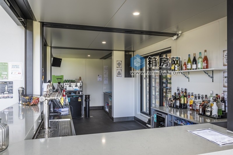 接著是室內(nèi)唯一的餐吧,多種美食、飲品供游客隨意選擇,設(shè)計(jì)師還特意添加了集裝箱的元素在內(nèi),讓整個餐吧更有工業(yè)風(fēng)的特色。如果對餐吧的食物不滿意,可以選擇在里面的廚房內(nèi)做自己喜歡的食物。