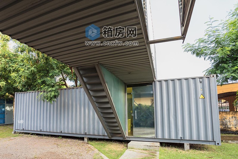 該集裝箱辦公室租用土地450平方米,由40英尺的集裝箱構(gòu)建而成。由于土地是租來的,采用集裝箱結(jié)構(gòu),方便移除和重新組建。
