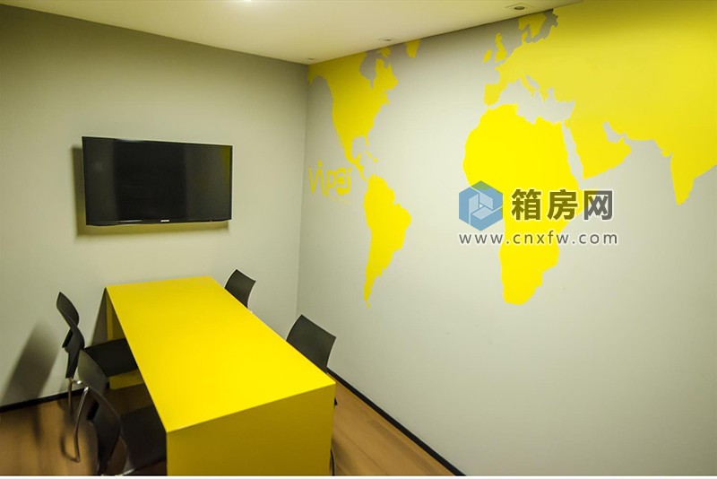 室內(nèi)設(shè)計(jì),采用了一種極簡主義光學(xué)理念。所有的家具都是用黃色和白色制作,鮮明光亮,同時(shí)呼應(yīng)公司的Logo。墻上貼的是項(xiàng)目相關(guān)圖片,比如草圖和技術(shù)圖紙。在會議室里,便是鮮明的黃色會議桌與世界地圖貼紙。