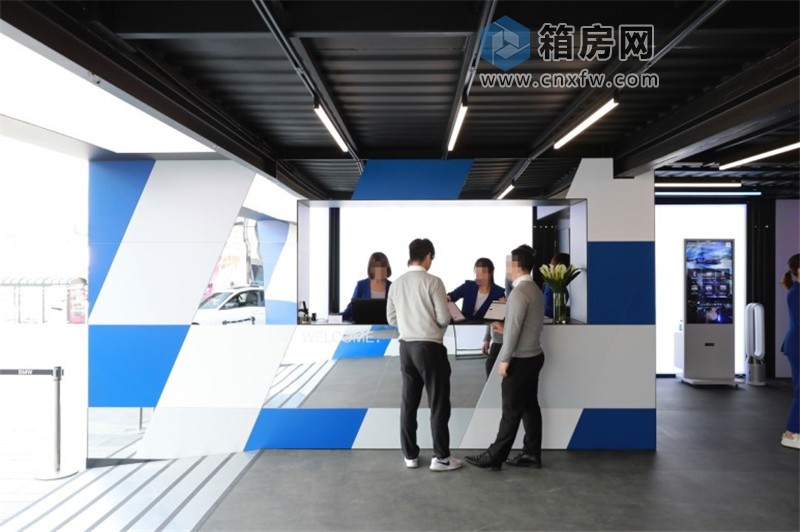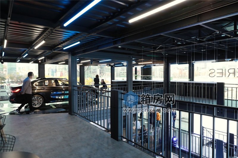 這個寶馬展廳由多個集裝箱和鋼架構(gòu)組合構(gòu)建而成,但是波浪板箱壁卻被落地玻璃所替換,營造了一種高級商務(wù)感。同時(shí),這樣的設(shè)計(jì)也會為室內(nèi)的透光帶來便利,讓環(huán)境更為明亮一些。