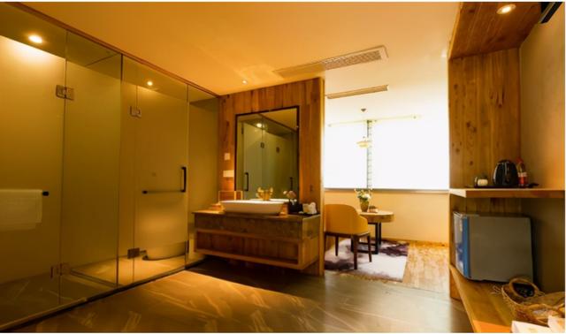 房間的露臺有玻璃棧道的感覺,正對著外面的大山和流水的落地玻璃窗,滿眼的綠色和大山。老板很有創(chuàng)意,利用集裝箱和徽文化的完美結(jié)合,打造了這家集裝箱民宿,住進去完全感受不到是住在集裝箱里。當(dāng)徽式禪意遇上了輕奢工業(yè)風(fēng),集裝箱的巧妙介入,使得整體的觀賞性和功能性達到了一個絕佳平衡,住這樣的居所,才叫銷魂。