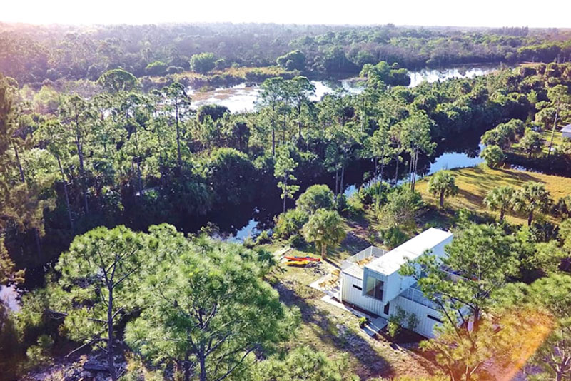 充滿塵囂和和受疫情影響的城市,真是不戴口罩就出不了門的節奏。有這樣一座位于大自然的集裝箱民宿,遠離城市可以讓你享受大自然的新鮮空氣。這座兩層的工業風房屋坐落于佛羅里達州風景優美的洛克瑟哈奇河上游,臨河而居,叢林環繞。