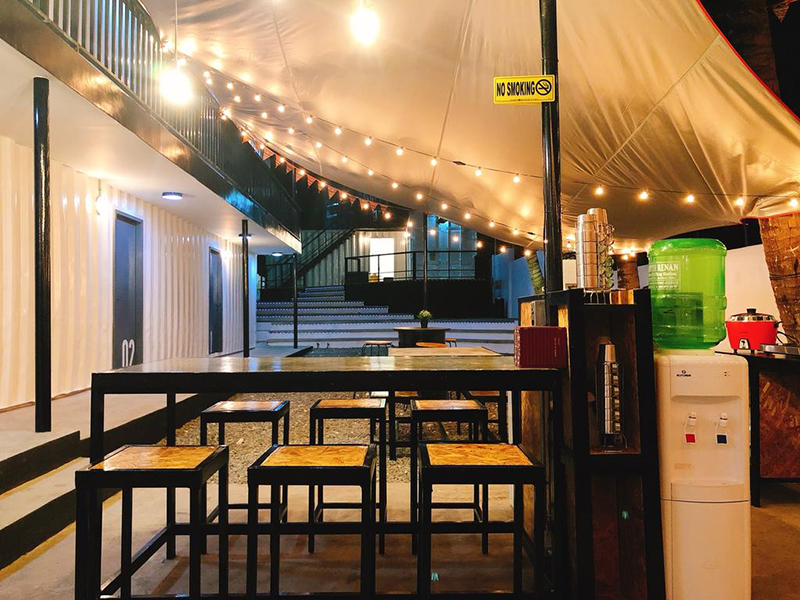 穿過旅館的前臺就來到住宿區,集裝箱的外殼顏色選用了純白。旁邊搭建著一個帶有帳篷的戶外活動場地,是一個公共廚房和用餐區,白天的時候可以在這里享用旅館現做的早餐,夜晚則可以在浪漫的星星燈下促膝長談。