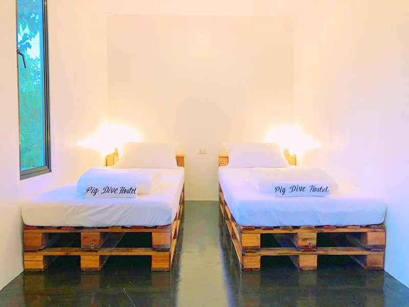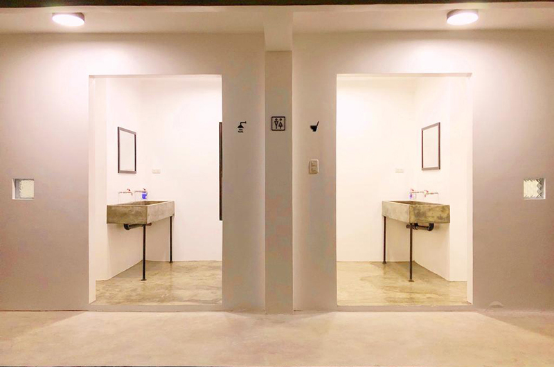 住宿區用四個大型集裝箱組成,一樓有兩間雙人房,二樓是混合型六人房,樓頂還有一個可以躺著看星星的露臺。雙人房有自己的專屬衛浴,居室風格延伸民宿的集裝箱屋外觀,以白色為主軸,搭配木質和水泥地板,簡單大方。