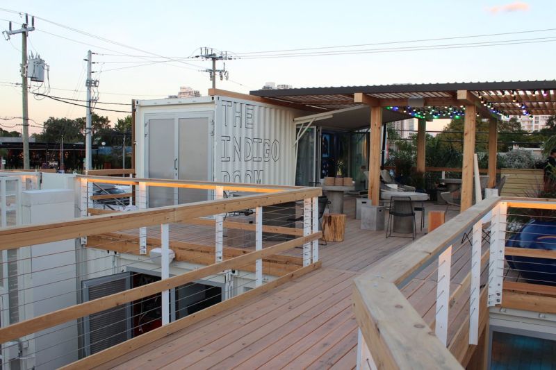 這12個(gè)集裝箱模塊都是在工廠內(nèi)進(jìn)行內(nèi)外裝飾的,在安裝完窗戶(hù),門(mén)和室內(nèi)裝飾后,這些集裝箱就會(huì)被運(yùn)至現(xiàn)場(chǎng)繼續(xù)進(jìn)行最終安裝。項(xiàng)目在應(yīng)用美學(xué)細(xì)節(jié)之前就已合理構(gòu)造了臨時(shí)結(jié)構(gòu),并使用了Modtruss框架進(jìn)行所有甲板和遮陽(yáng)篷的裝飾。