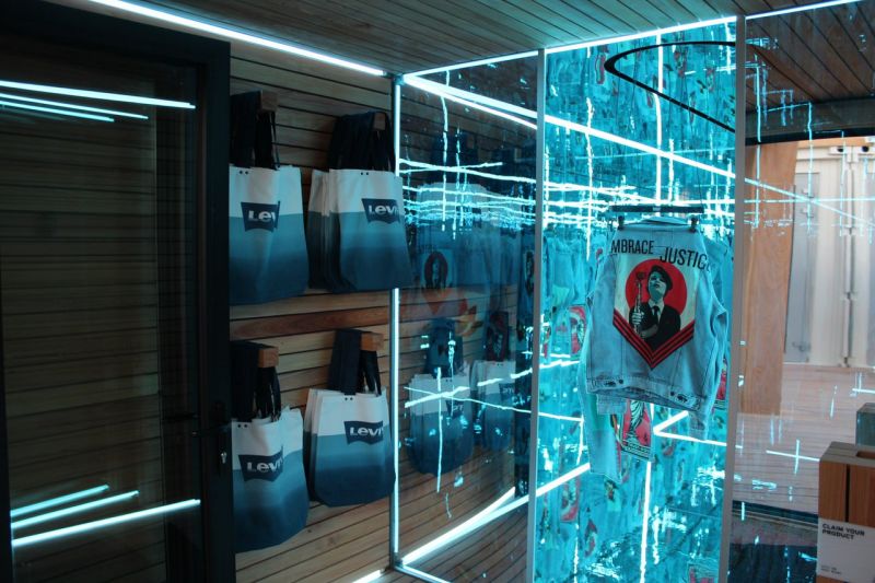 在該定制體驗(yàn)店內(nèi),顧客可以通過(guò)Future Finish技術(shù)和激光驅(qū)動(dòng)技術(shù)定制他們專(zhuān)屬的個(gè)人服飾,這是一種能夠使用精加工細(xì)節(jié)來(lái)定制牛仔褲的技術(shù)。這個(gè)零售店完全致力于自我表達(dá),可以幫助Levi's的粉絲制作出他們最喜歡的服裝,并穿上這種衣服,這是創(chuàng)造該種體驗(yàn)的最佳選擇。