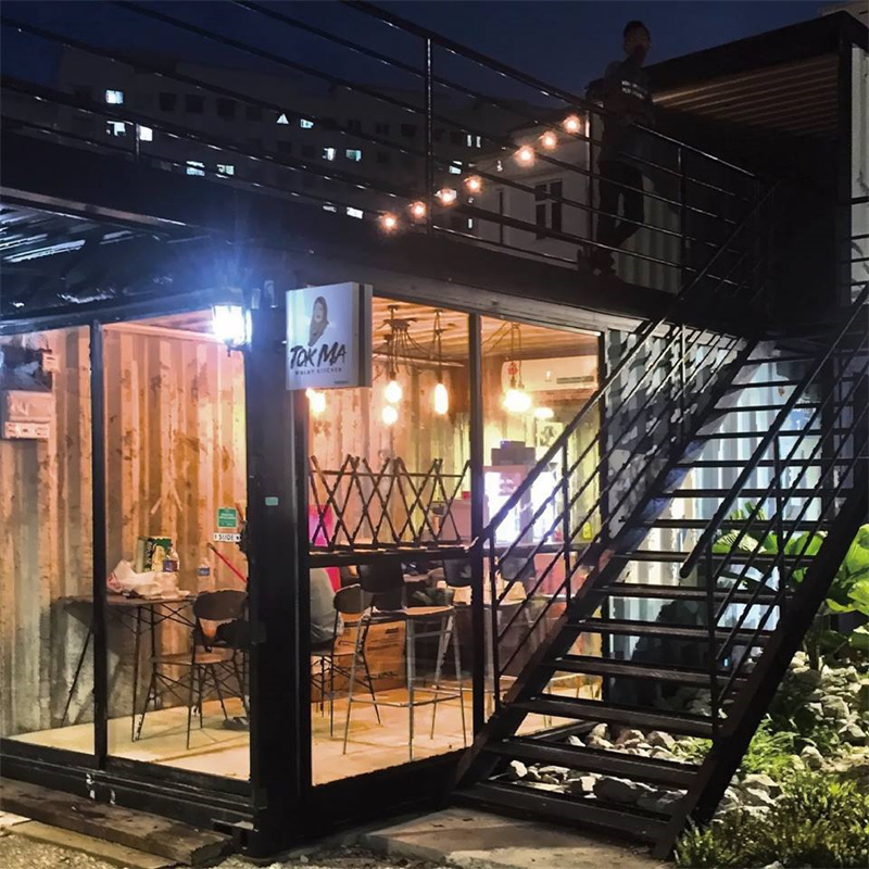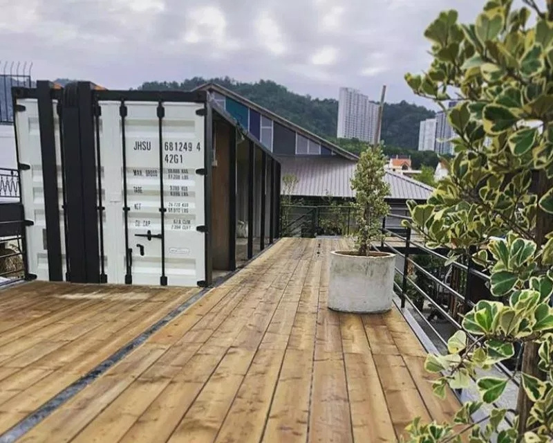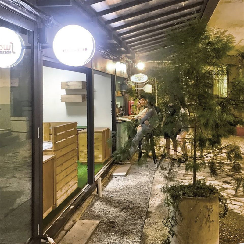 而有一些店家則會直接在頂層的露臺上再加建一個集裝箱,作為兩層建筑使用,擴大室內(nèi)的使用面積。