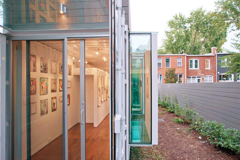 屋主說,“我們很希望可以建立一個方便自己工作的空間,而且與可以與朋友們分享我們收藏的藝術品,并且到家里來做客。后院就是我們的工作室,這就是得這些愿望都可以同時實現?!?0尺的集裝箱經過改裝直接運送到業主家的后院。
