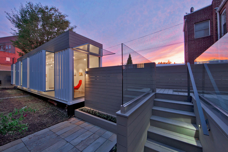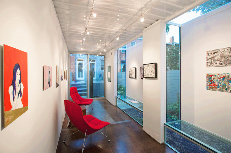 這是一個藝術畫廊工作室,屋主是一位狂熱的藝術品收藏家,多年以來和妻子一起積累了很多精美藏品。該社區附近也有不少集裝箱建筑項目,例如住房、餐廳等等,所以屋主就計劃在自家后院用集裝箱建造屬于自己的藝術畫廊工作室。