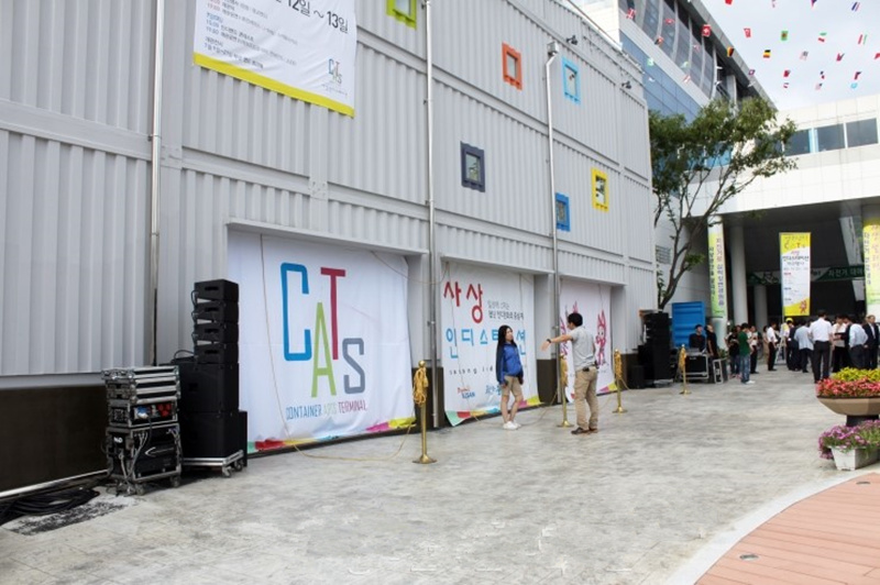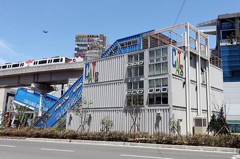 釜山至金海的輕軌中轉站沙上站前的廣場,曾是個不起眼的地方,在歷經數(shù)年打造后,由數(shù)十個集裝箱組成的文化藝術空間于2013年5月宣布誕生。集裝箱藝術中心(CATs)”,為給在韓國全境篩選出的集裝箱賦予地域性元素,特意選定“沙上”作為舉辦地。