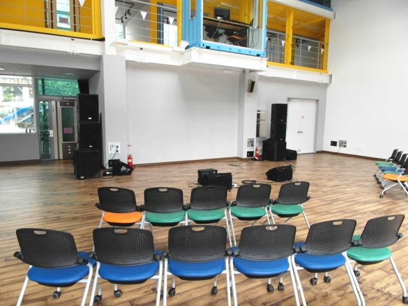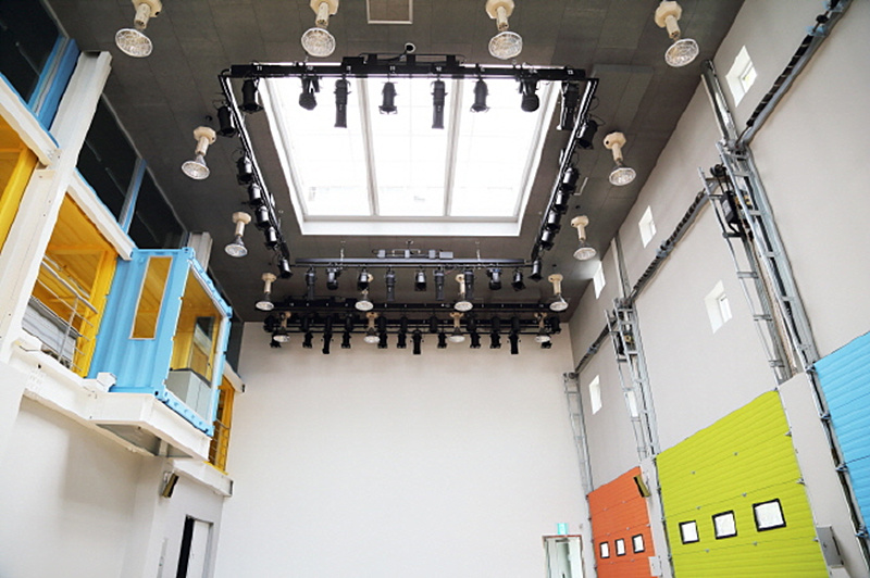 作為主要公演場地,“熱鬧樓”規(guī)模并不大,但內部設施與一般演出場所及展覽廳相比毫不遜色。這里是一棟萬能娛樂樓,提供公演、展覽、講演、討論會、電影放映等。天窗開閉式公演場的最大特色在于,空間可根據實際需要隨意調整,且為自然采光照明,迎合了傾向于另類創(chuàng)作的年輕藝術家的感性路線。為打造一個從外部也可欣賞到展覽的效果,整樓采取全玻璃設計,沙上站一帶可盡收眼底。