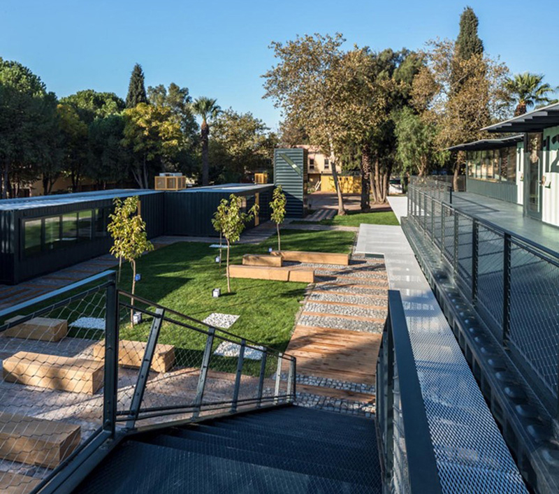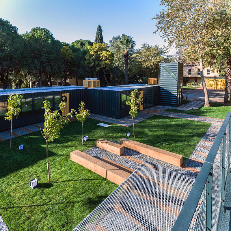 21世紀以來,人們逐漸意識到在教育、調研和工業間形成了新的生產關系,很多科技園設計成用于培養跨學科交流合作的公共設施建筑。下面說到的項目是校園內由35個改裝的二手集裝箱形成的新的充滿活力的研究交流中心,該中心將作為該大學引進人才的主要活力中心。該項目建于大學校園內一座堆放建筑拆毀殘渣基地上。通過對二手集裝箱的再利用,設計團隊利用未充分利用的建筑材料來升級改造一個地基。