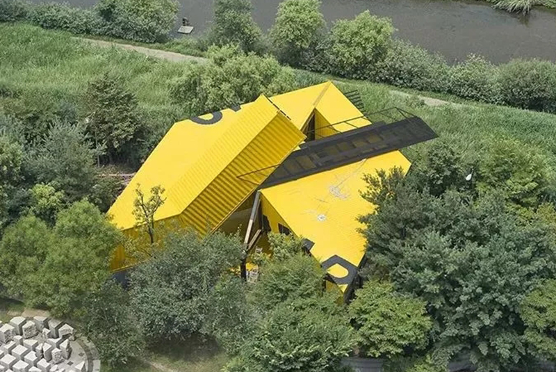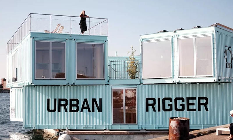 上圖這座漂浮在水面上的學(xué)生公寓建成后火了一陣,但防水一定要做好,集裝箱建筑的防水處理: