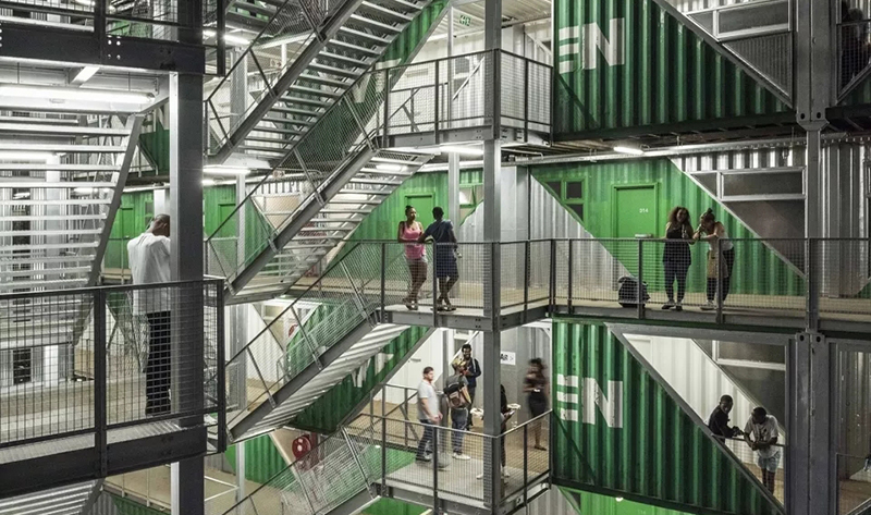 相信各位看到過不少相關(guān)案例,比如上圖 Common Ground 商場(chǎng)就比較熱門。其由超過200個(gè)集裝箱組件而來的四層建筑,藍(lán)色的搶眼外觀,為這個(gè)貨柜市集創(chuàng)造出不一樣的文化藝術(shù)氛圍。