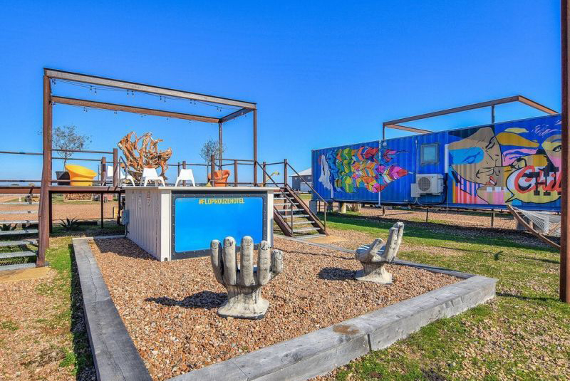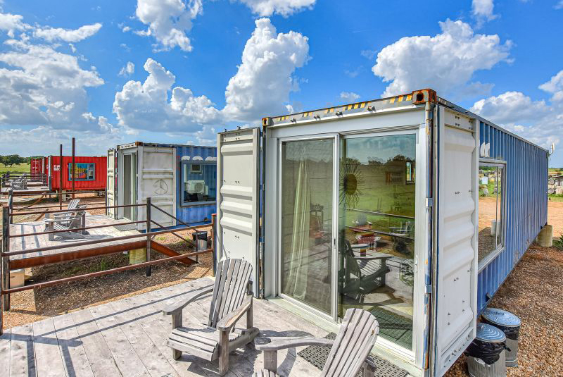 一個(gè)集裝箱模塊就是一個(gè)單獨(dú)的住房,外部由金屬壁板材料和屋頂材料構(gòu)成,擁有平屋頂線,是一座集裝箱建筑類型的現(xiàn)代住宅。所有模塊的底部都經(jīng)過了墊高處理,以減少濕潤土地對箱身的加速腐蝕。有的集裝箱壁上還擁有整片的涂鴉,鮮艷的色彩營造了活躍的藝術(shù)氛圍。