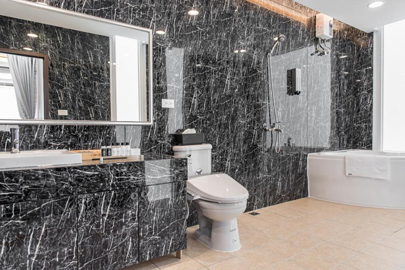 A、B兩區(qū)的集裝箱高級(jí)套房根據(jù)人數(shù)需求的不同,分別設(shè)置為親子房和雙人房,由數(shù)個(gè)集裝箱拼接而成,創(chuàng)造了寬敞的室內(nèi)活動(dòng)環(huán)境。特別的是,房屋內(nèi)設(shè)有一個(gè)帶紗簾的空間,即使白天把窗戶打開(kāi)也不用怕被蚊子問(wèn)題困擾。此外,套房?jī)?nèi)還設(shè)有帶泡浴缸的衛(wèi)生間,可以盡情享受放松時(shí)光。
