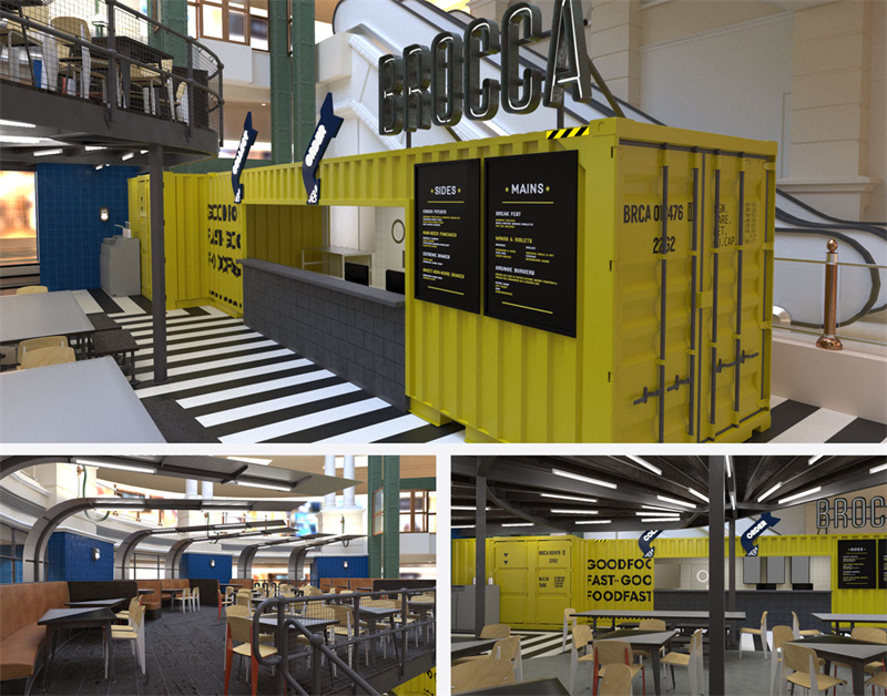 一個集裝箱將形成這個想法的基礎,其余的空間將圍繞它展開。這個集裝箱也將成為廚房和服務區(qū),并為員工提供一個中心。夾層樓將提供額外的座位,并確保空間不會太擁擠。這將是一個出色的餐廳,以其雜亂的街頭食品和幾乎極簡主義而聞名。