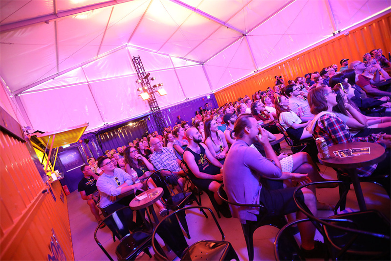 這是國(guó)外的一個(gè)喜劇節(jié),為了能響應(yīng)節(jié)日的主題,現(xiàn)場(chǎng)需要一個(gè)可以在露天搭建的劇院裝置,用以出演或者播放戲劇。為此,服務(wù)商為其提供了一個(gè)移動(dòng)架構(gòu)的概念。用七個(gè)集裝箱打造了一個(gè)大型的露天影院,隨到隨建,配備可拆卸的帆布屋頂,成為世界上第一個(gè)使用回收集裝箱建造的移動(dòng)影院。