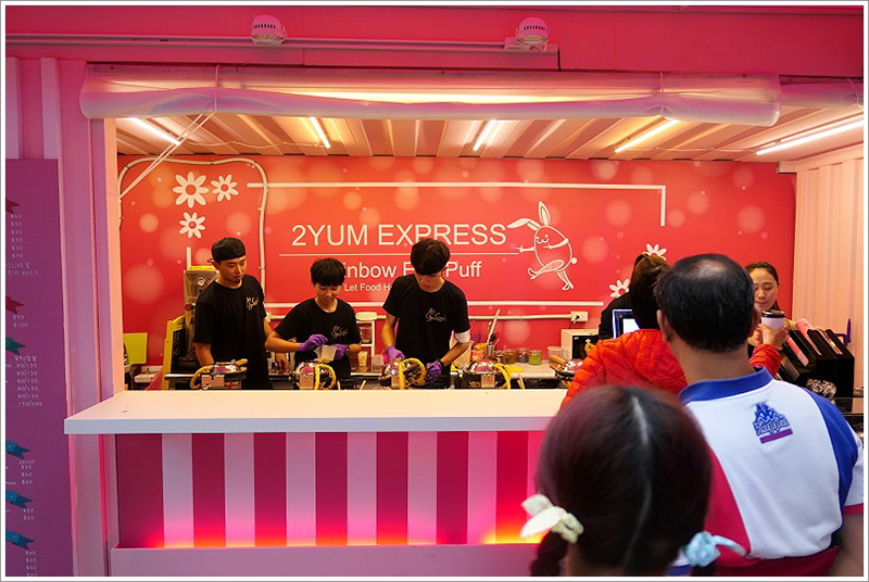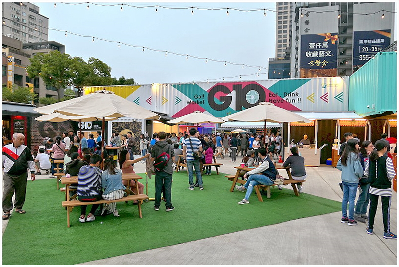 到了文青主題區,畫風就轉變成異國料理餐廳的天下,包括美式紐約布魯克林、歐洲地中海及法式典雅風等等。大大的市集名字被噴漆在商鋪頂上的集裝箱壁,線條搭配成北歐的樣子。主題區中心還鋪設了一塊人造草皮,搭配大陽傘和戶外用餐區,讓人有種在野餐的感覺。