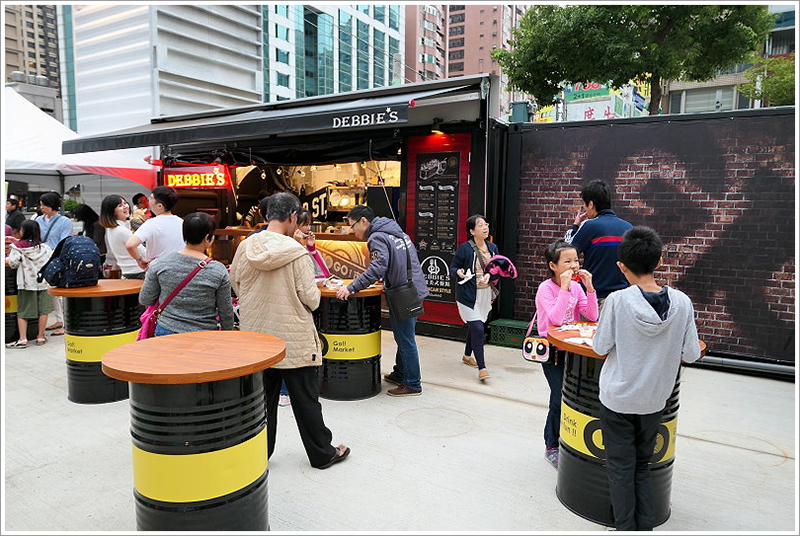 而市集內還有一些有趣的自拍背景墻,比如木制階梯舞臺、用菜籃堆疊出的G10文字等,還有美味的小吃,都讓這個市集趣味無限,吸引了一波又一波的人流前往。