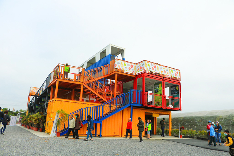 除了這些新潮有趣的集裝箱看臺,還有另一個獨(dú)具特色的建筑——竹夢館,這是一個用竹子花了至少一個月才制作出來的建筑,外觀看起來就像是小型教堂,搭配后方的花海就很有自己的味道。竹夢館中主要用于介紹本土產(chǎn)材加工、文創(chuàng)商品等。