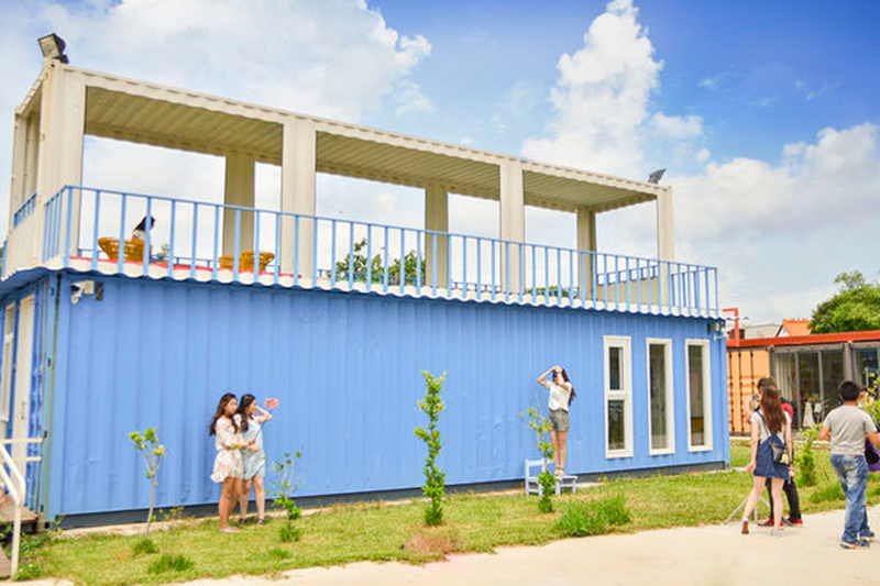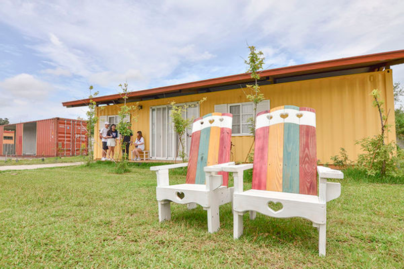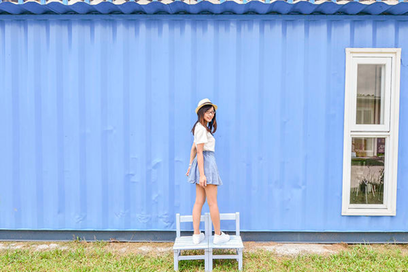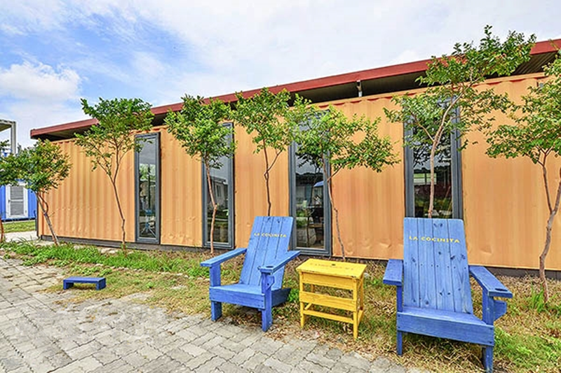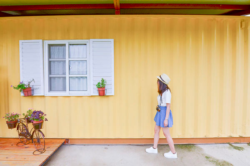 漫步在色彩繽紛的貨柜村,宛如走入了愛麗絲仙境,心情愉悅輕松。區(qū)別于一般的觀光景區(qū),好好聚落一旁腹地較廣,游園的客人無需擔(dān)憂人潮過多的情況。集裝箱經(jīng)過改造,都在立面不同的位置安上了門窗,內(nèi)部也可供使用,外部四面都添上了不同的顏色可供拍照,細心的店家還在一些集裝箱旁放置了小凳子等設(shè)施,方便游客拍照或者休息使用。
