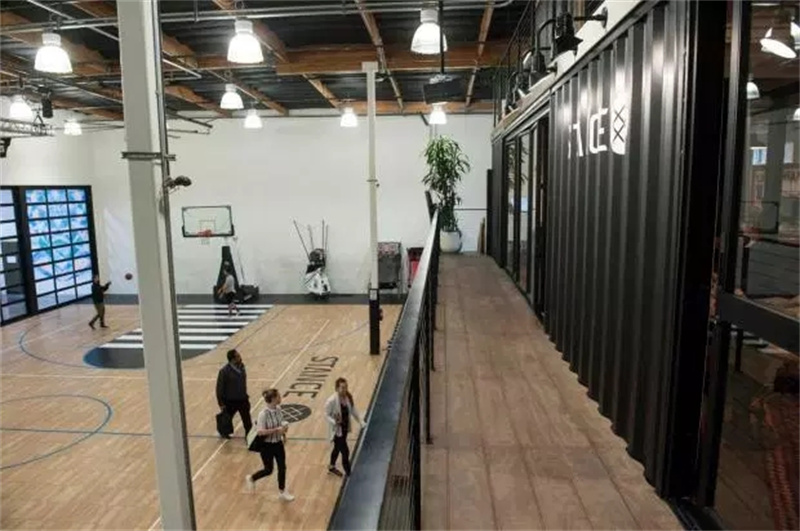 除了籃球場,在集裝箱的周邊還有各種健身器材、滑板場等,簡直就是一個配套完善的健身房嘛!同時,還不忘設有休閑的下午茶吧臺,滿足不同員工的不同需求。