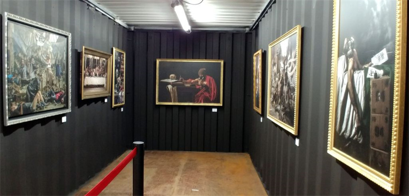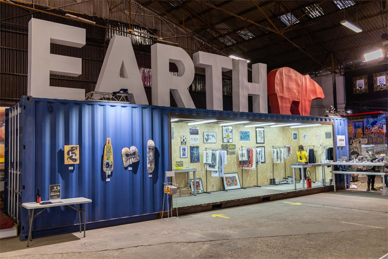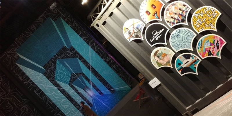現(xiàn)場(chǎng)的集裝箱安裝僅耗費(fèi)了1天時(shí)間,除了有集裝箱搭建而成的畫廊之外,館場(chǎng)內(nèi)部還加入了許多街頭涂鴉。與專題展覽不同,這里把所有的風(fēng)格都融合在一起,形成了一個(gè)整體,旨在詮釋一個(gè)口號(hào):自由表達(dá)。