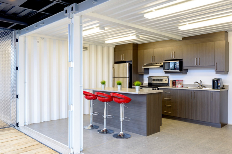 注意到那扇集裝箱門了嗎,對,就是這個小小改裝,成為了一個置物架墻。同樣是雙拼的廚房設備齊全煮食首選。