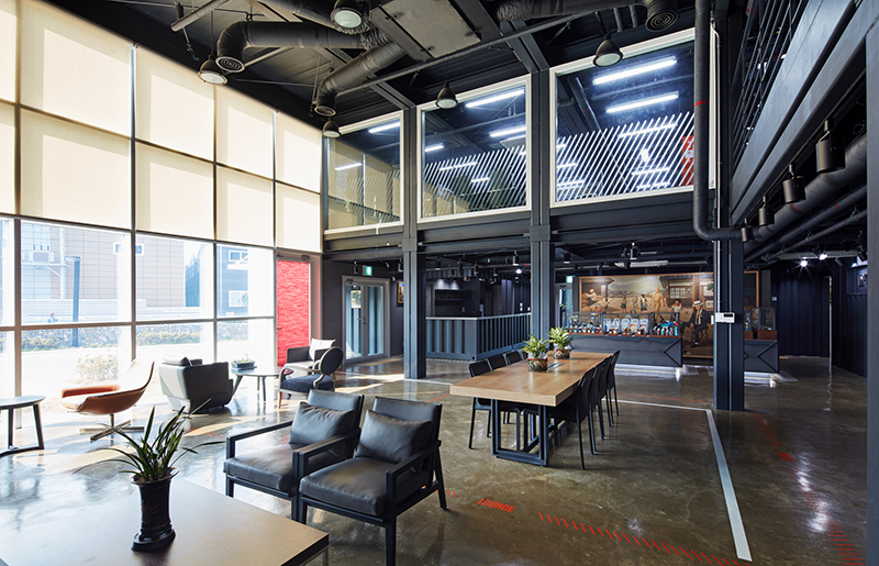 工廠的形象一直以來都是一個典型的封閉生產(chǎn)空間,只有死板的流水線,與辦公室的工作完全分離,缺少了人性化的交流。但想要有高效的工作效率和更好的產(chǎn)品質(zhì)量就一定需要交流,于是辦公車間就這樣二合一地被制造出來了。