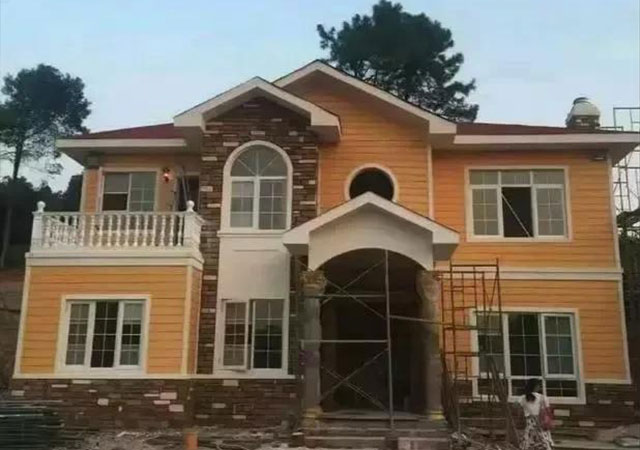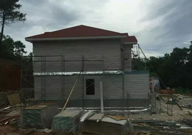 今天咱們來看下現場,到底它是怎么建起來的。這棟別墅相信大家都不陌生了,見過的實景別墅也不下十幾棟,但是這棟輕鋼構造,僅用25天就建成,在當地還引起了一陣轟動。