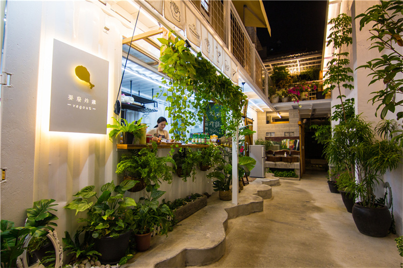 位于中國臺灣嘉義市東區忠孝路346巷18號,由老舊房屋改造,加入韓國元素的鐵桶、高腳椅等,并用集裝箱模塊打造了一座全新的餐飲建筑,以白色為主軸,成為網紅打卡新熱點。老房子被改造成寬敞的公共就餐區,而旁邊新建的集裝箱建筑則進駐了三家韓式美食餐廳,包括:耍廢炸雞、尚贊燒烤居和兜圈咖啡廳。該集裝箱建筑共有三層樓,最頂上是一個露臺,并利用鋼架構創建了戶外活動甲板。