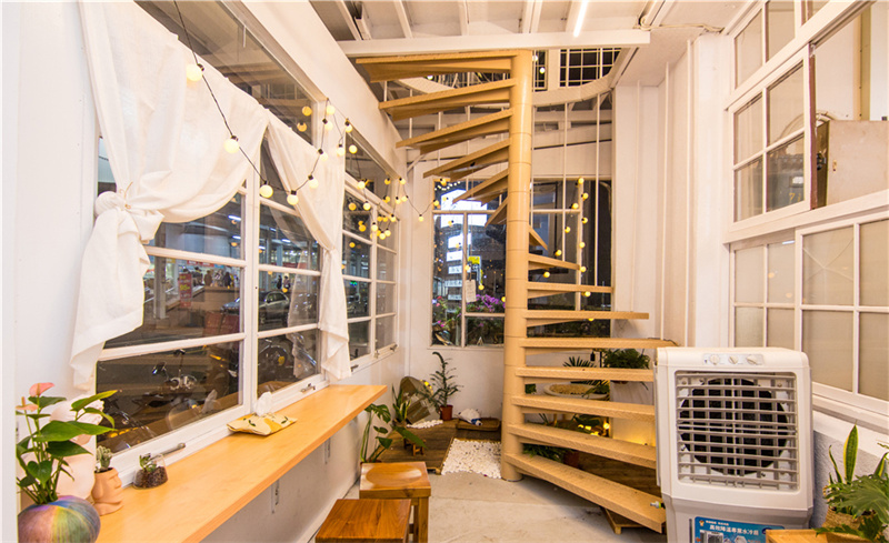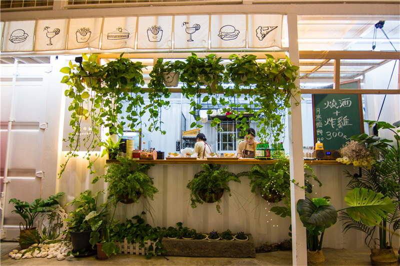 耍廢特區白色集裝箱屋共分為三層樓,室內和室外均有樓梯可以自由活動。所有餐廳都采用自助式取餐,用餐后也需要自行回收餐盤到固定位置。由于集裝箱內空間限制,室內樓梯采用螺旋型,精致且實用。你還可以在建筑內隨處發現綠植,白色集裝箱區搭配綠意,打造放松的氛圍。