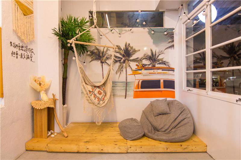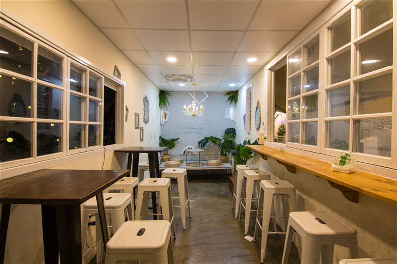 集裝箱內的空間不大,但使用靠墻的長桌和高腳椅可以節省不少空間,并且箱身上開設了大面積的玻璃窗,減少狹小空間帶來的局促感。為了讓游客可以拍照打卡,集裝箱內還特別設計了INS風墻,搭配可愛的標語,處處都是小驚喜布置。